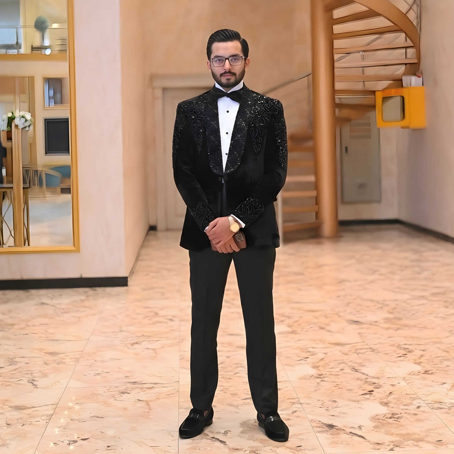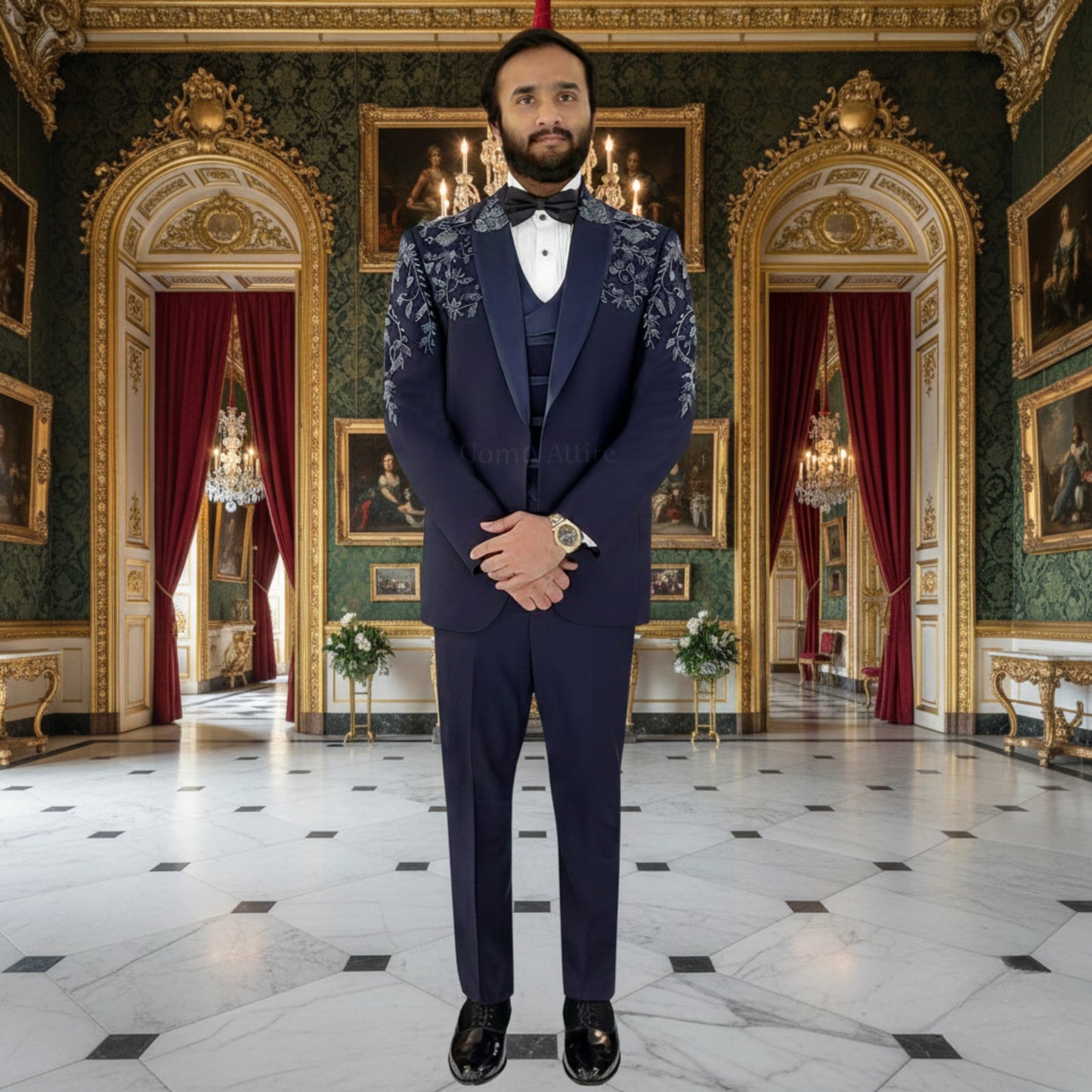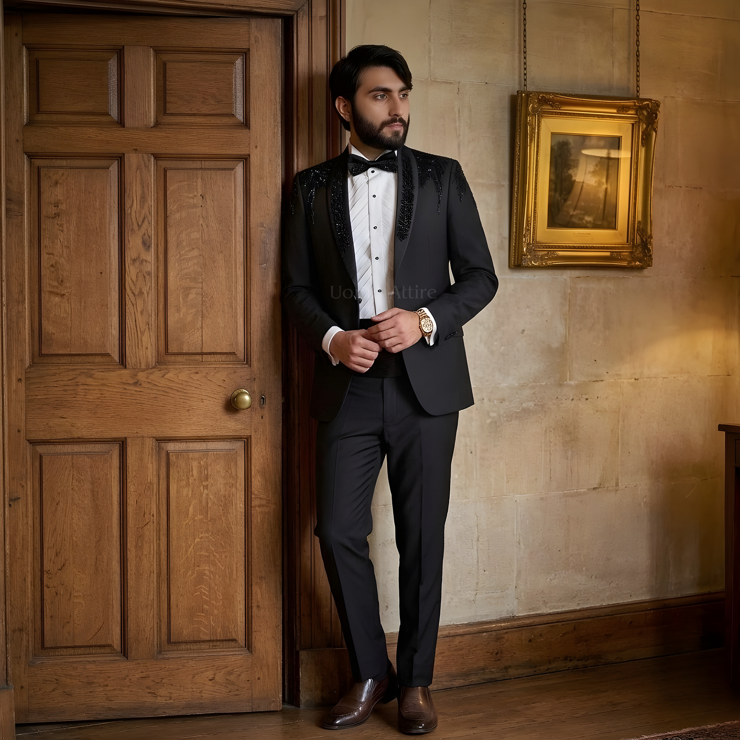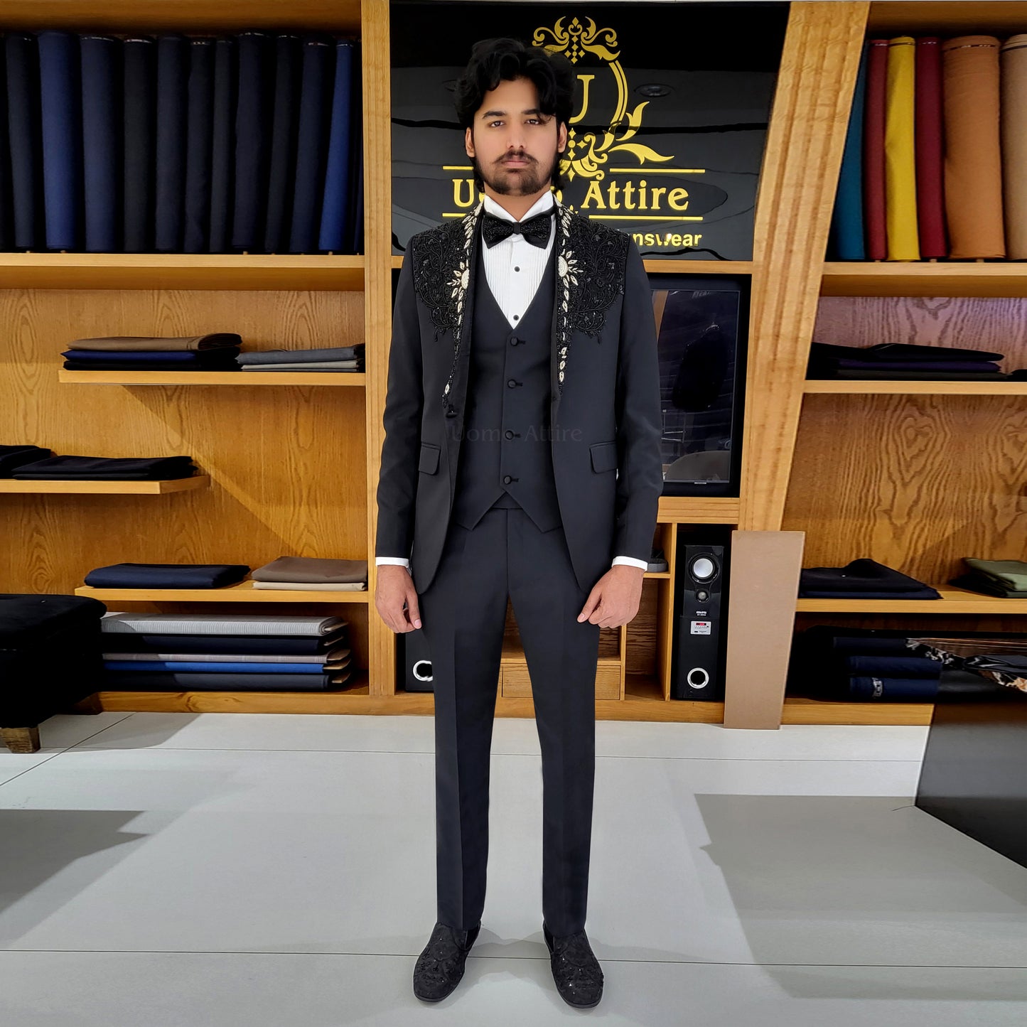 Elevate your fashion sense and experience unparalleled finesse with our elegantly dapper collection of Tuxedo 3 piece suits for men. With flawless stitching and exquisite embellishments, our team of talented craftsmen brings you a complete array of premium quality Tuxedo Suits that are tailored to fit your size and are a class apart.