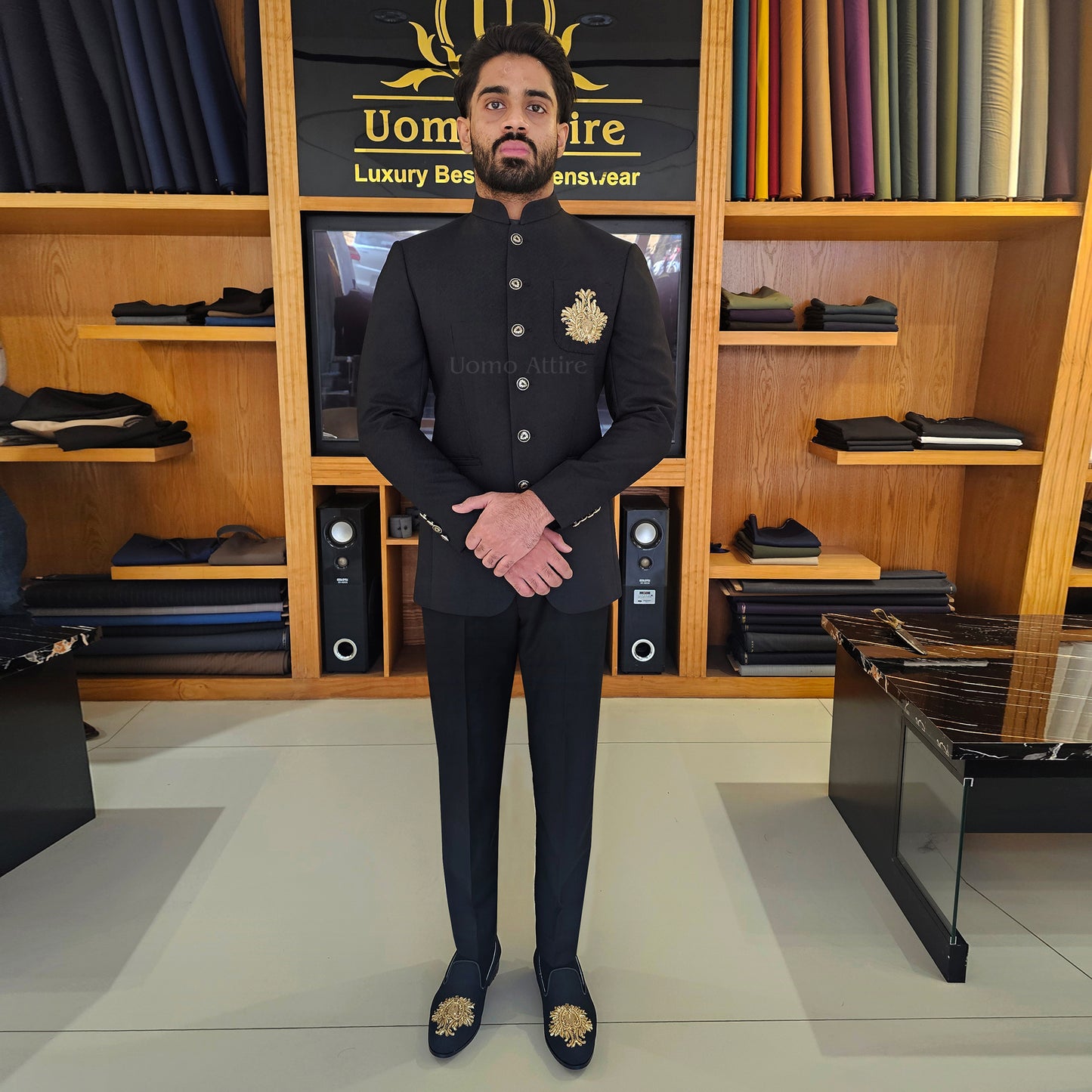 Limited edition fully embellished jet black prince coat | Black prince coat for wedding