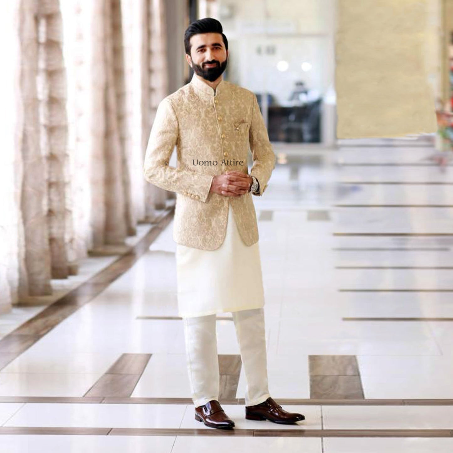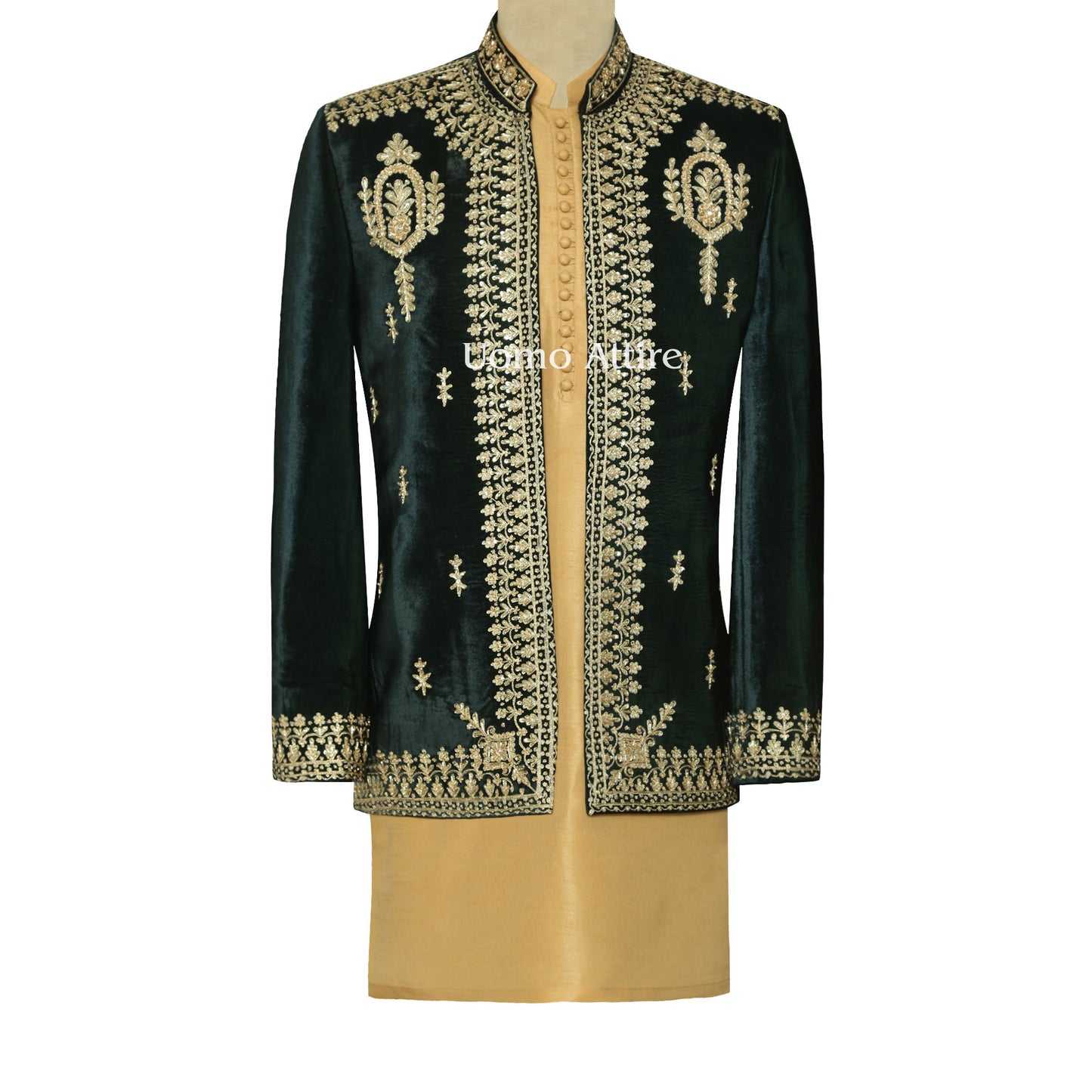 Add a modern touch to your basic white or black shalwar kameez. Uomo Attire brings you a range of prince coats that can be wear with shalwar kameez or kurta pajama. To create the ultimate royal look for all your formal events that speaks confidence and class.