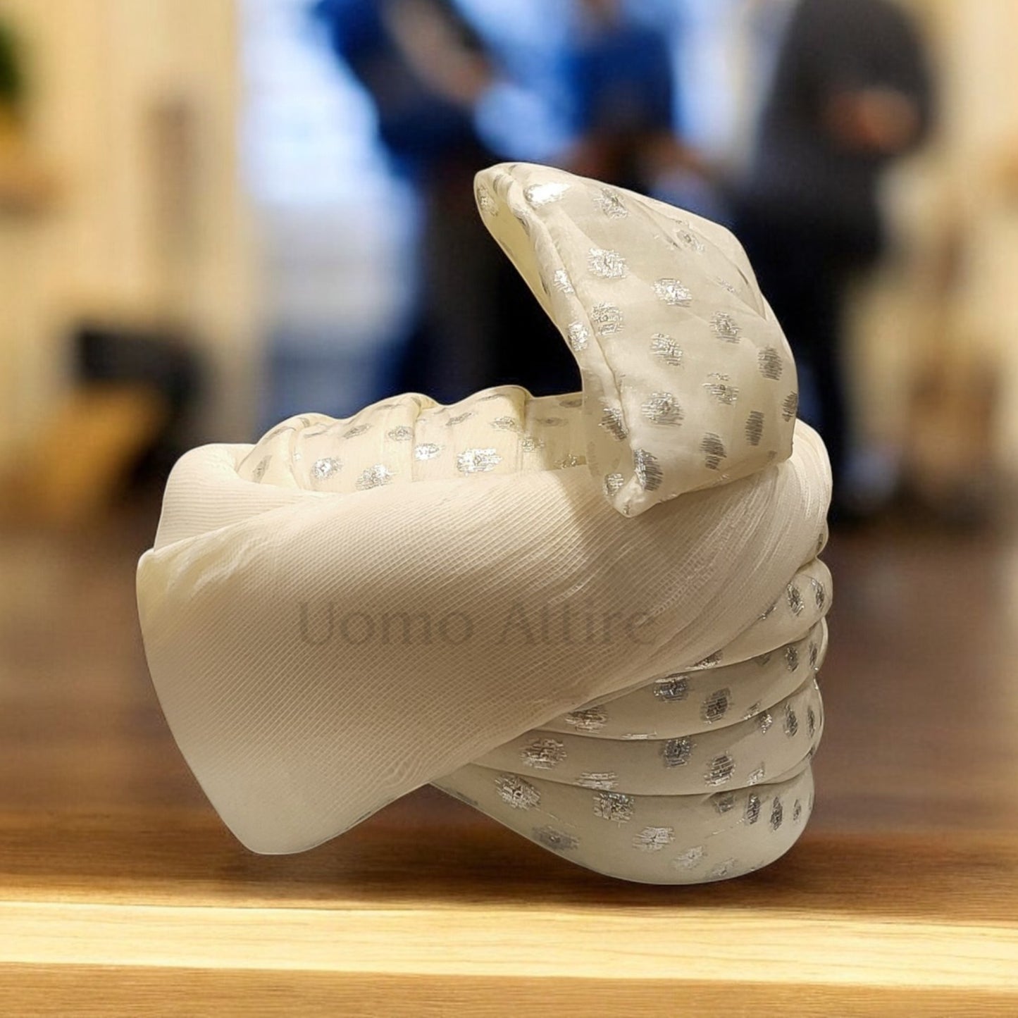 A groom’s traditional wedding attire is undoubtedly incomplete without a complementary turban. The number one accessory when it comes to wedding outfits. Uomo Attire brings you the complete range of customizable turbans for grooms. Which are exclusively create to match your wedding sherwani for a look that is hard to miss.