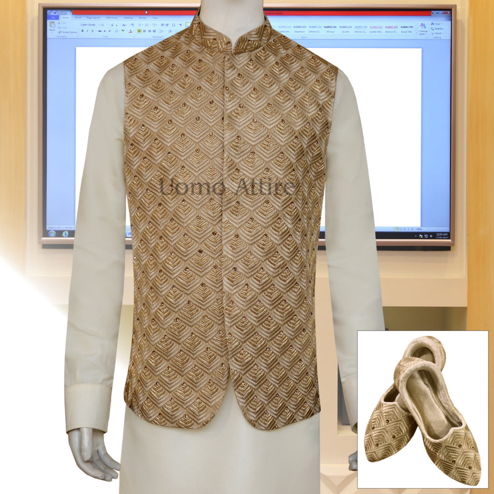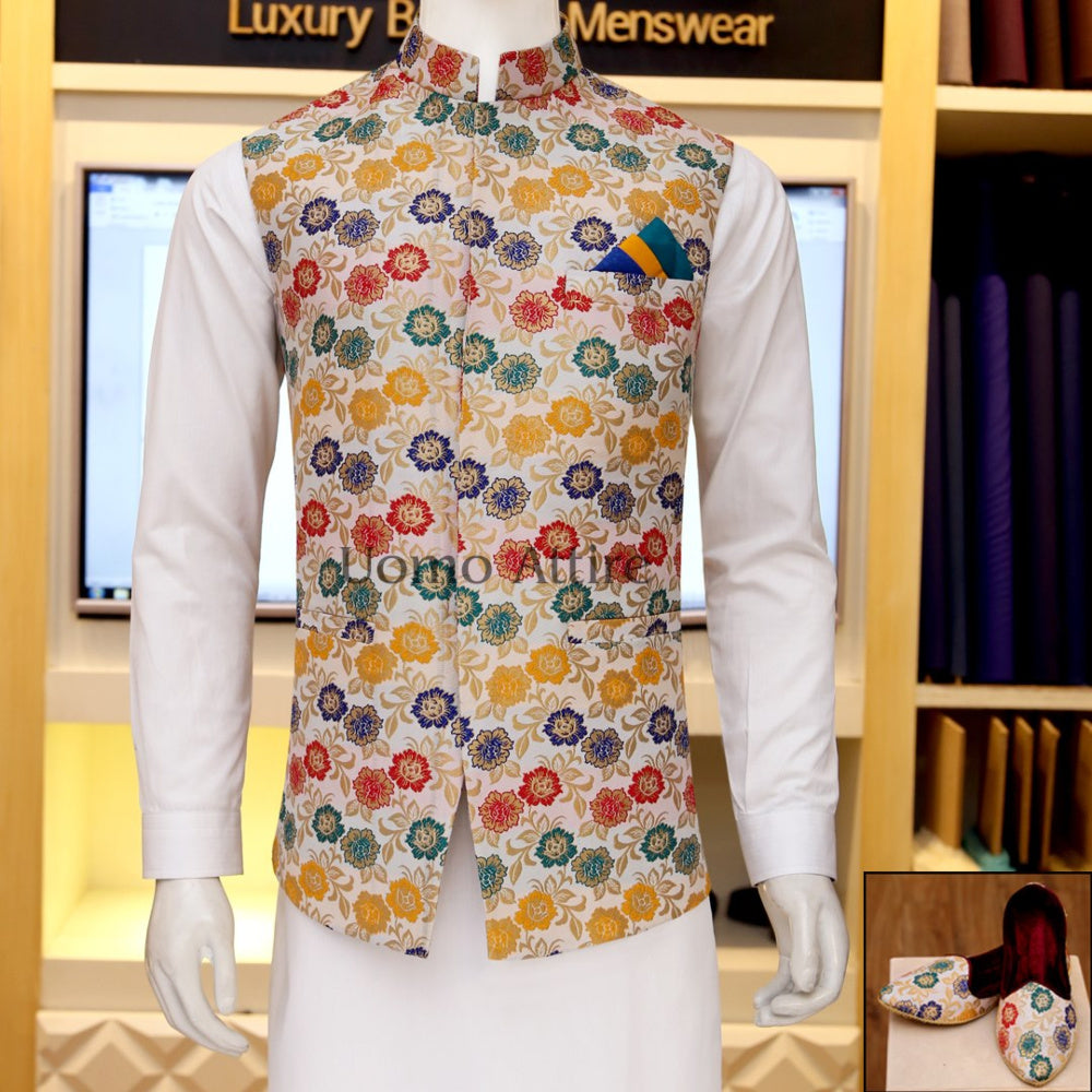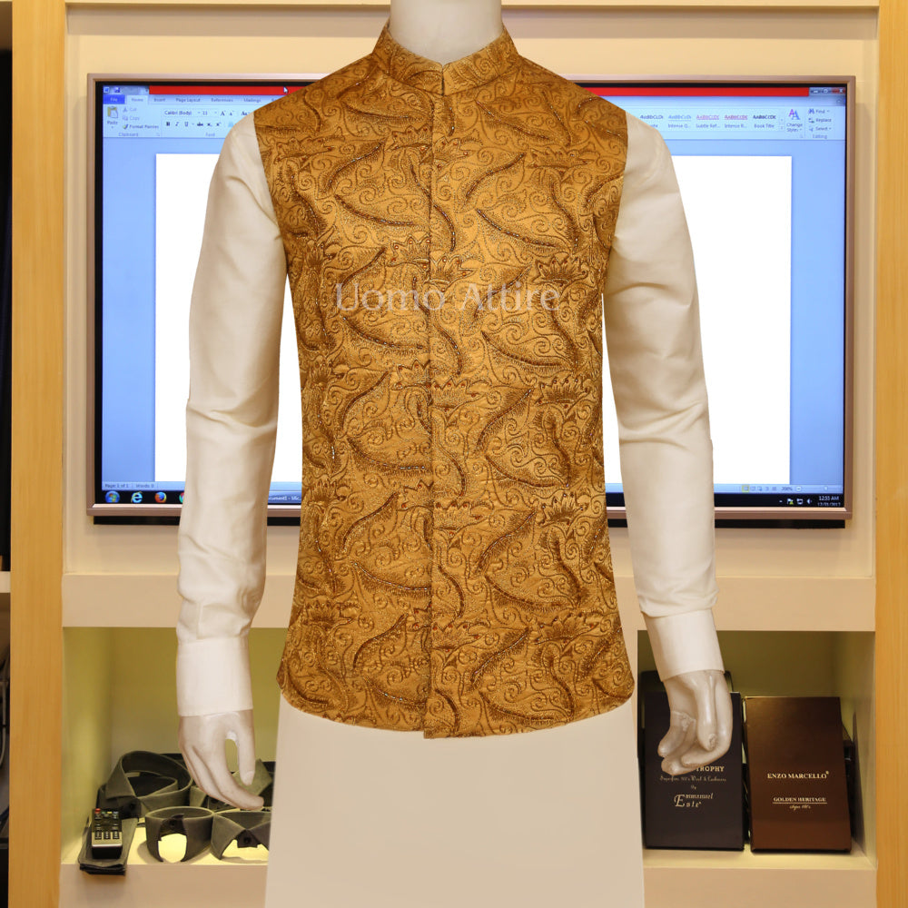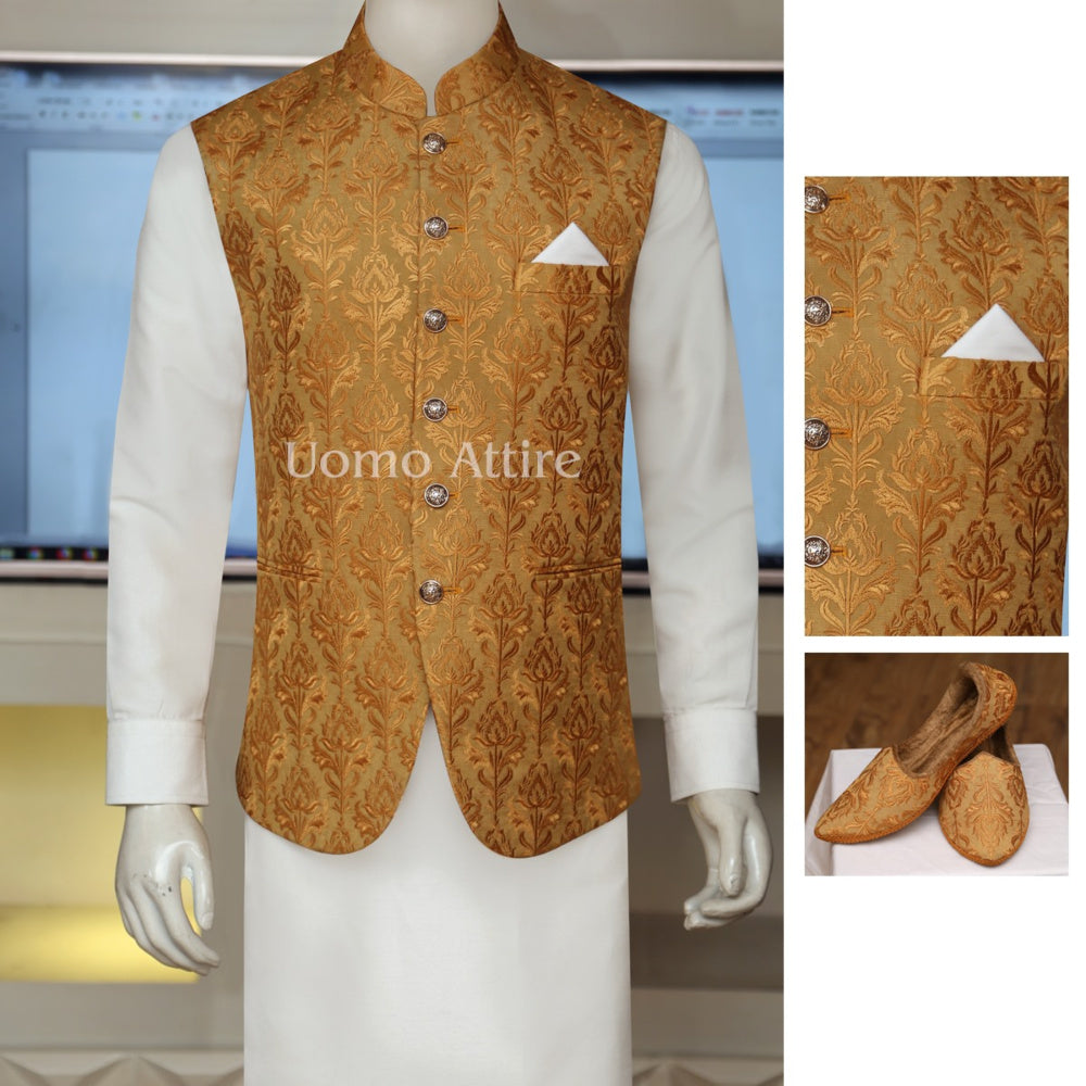La fonction Mehndi nécessite une tenue amusante mais jusque dans les racines. Uomo Attire a une collection complète de Gilets Mehndi pour les mariés . Ainsi que des invités pour le look ultime qui est à la mode avec un mélange de culture et de tradition. Que vous suiviez un thème pour votre grand événement ou que vous suiviez simplement le courant, nous avons tout, de monochrome à brodé à gilets ornés pour vous sous un même toit.