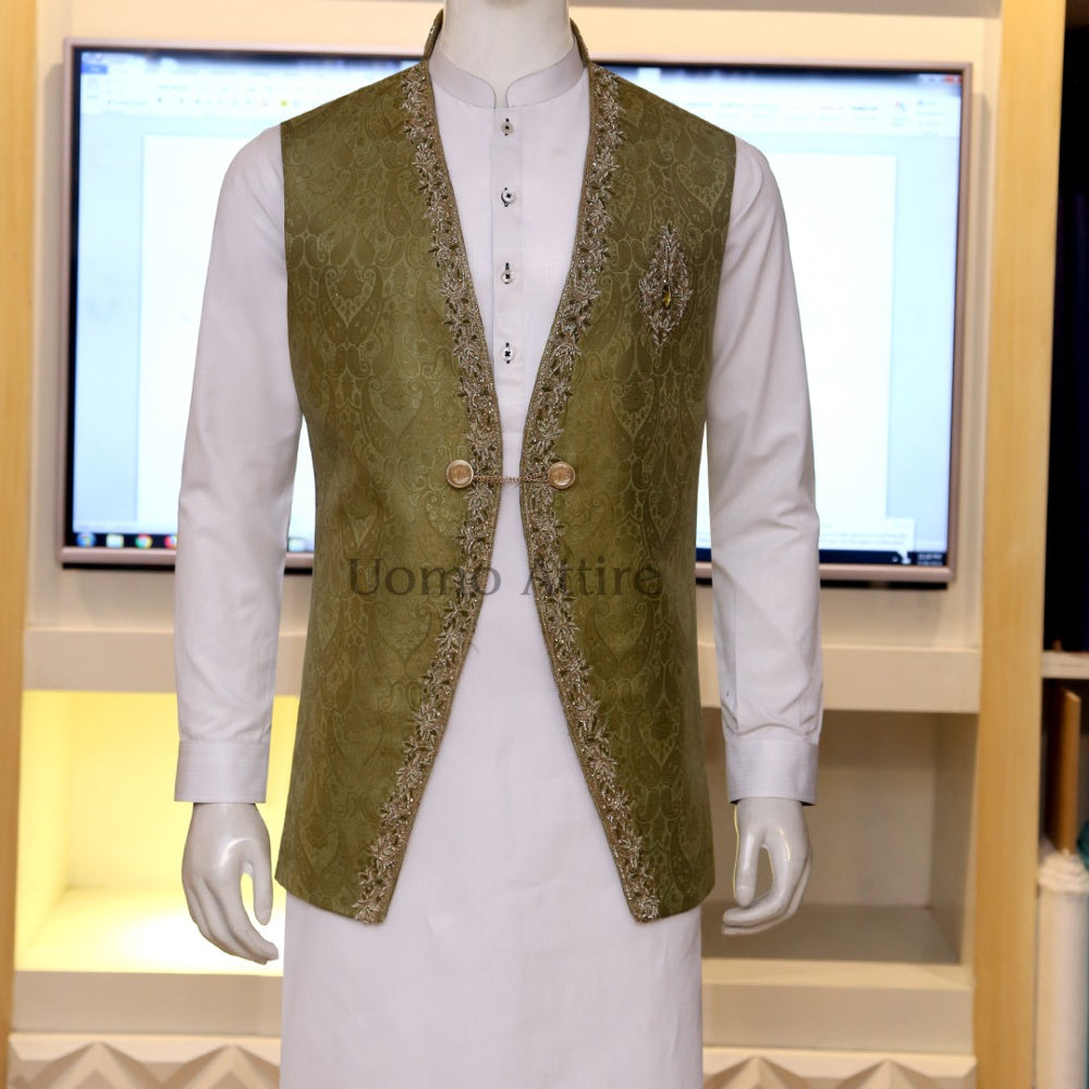 Slim fitted stunning color mehndi waistcoat, waistcoat