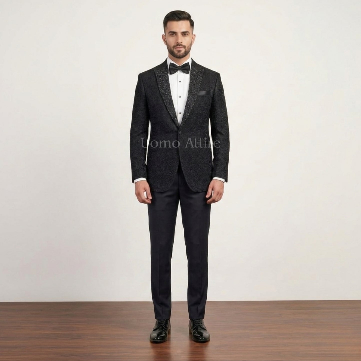 Men's Luxury Black Embellis...