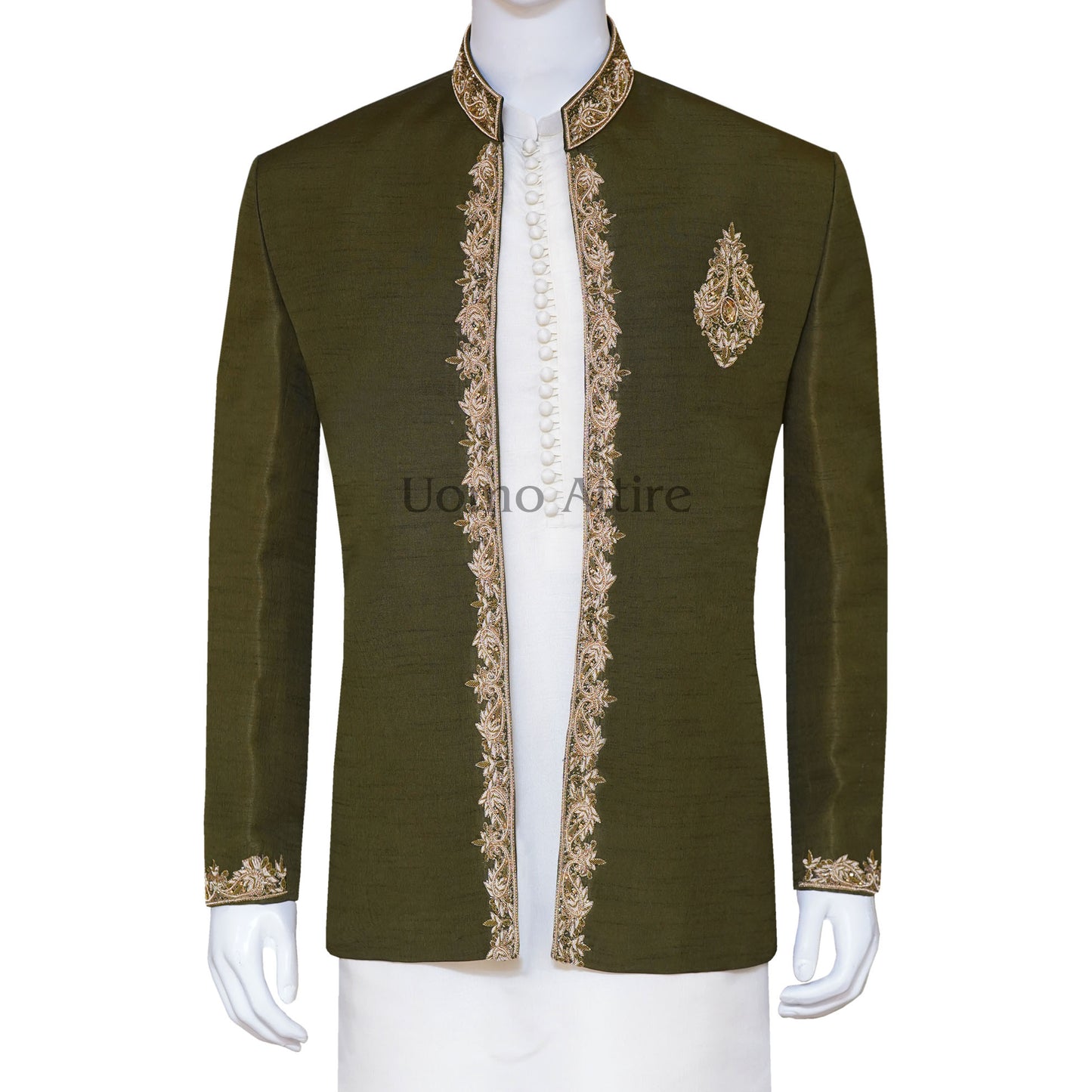 Les manteaux Prince , également connus sous le nom de costumes Jodhpori, sont une forme moderne et évolutive de sherwani pour hommes . Fabriqué à partir de notre tissu de la plus haute qualité et orné de motifs et de broderies uniques, Uomo Attire's fait sur mesure les manteaux prince sont parfaits pour porter avec Pyjama Kurta , Manteau prince avec pantalon et manteau prince avec shalwar kameez . Nous avons une variété de styles de manteaux prince et une collection unique pour toutes les occasions.