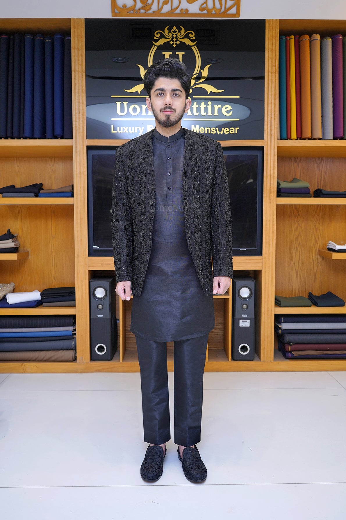 I cappotti principe , noti anche come abiti Jodhpori, sono una forma moderna ed evolutiva di sherwani per gli uomini . Realizzato utilizzando la nostra migliore qualità di tessuto e decorato con motivi e ricami unici, Uomo Attire's fatto su misura i cappotti principe sono perfetti da indossare Kurta Pigiama , Cappotto principe con pantalone e cappotto principe con shalwar kameez . Abbiamo una varietà di stili di cappotti principeschi e una collezione unica per tutte le occasioni.
