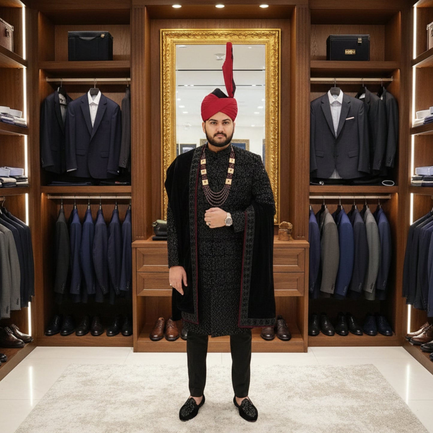 Collezione Uomo Attire di sherwani per gli uomini è disponibile in vari design per soddisfare le tue esigenze di stile uniche. Se stai cercando un classico sherwani monocromatico , un look dal taglio contemporaneo e moderno. O uno ricamato e abbellito, i nostri designer hanno curato una gamma che presenta stili sherwani personalizzabili con gli ultimi design da abbinare ai tuoi gusti.
