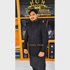 This majestic Black Prince Coat for Wedding is crafted for the groom who wants to own the barat stage with royal power. The open-front Black Prince Coat for Wedding is fully hand-embroidered with intricate gold zari, sequins, and beads in a rich zigzag pattern that creates dramatic sparkle under lights, layered over a matching black kurta pajama for a sleek, modern desi formal look.